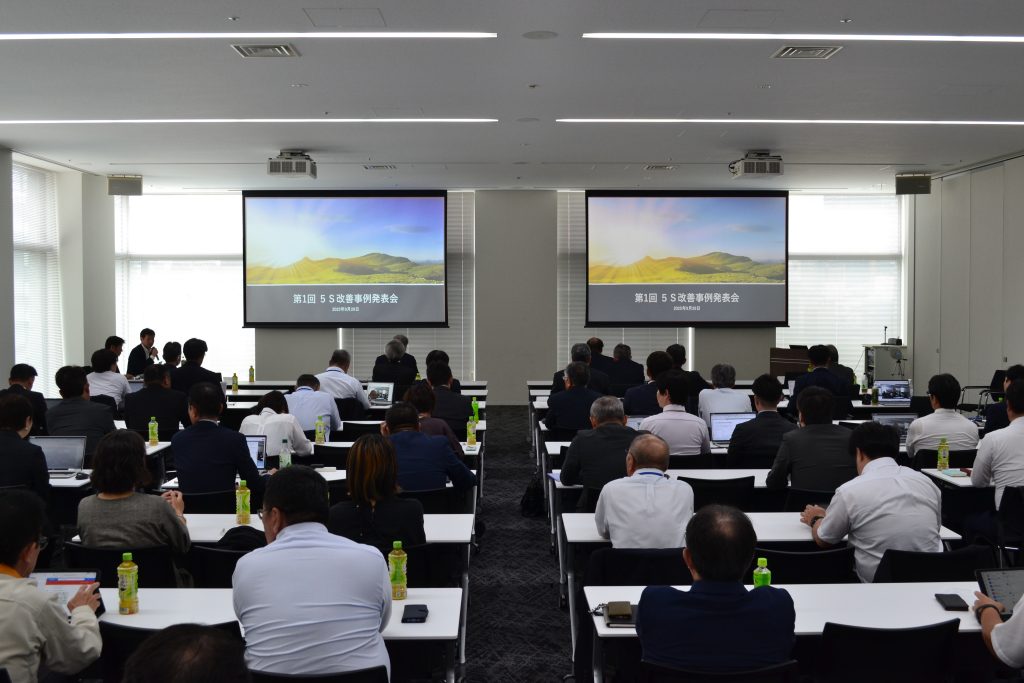 各現場や事業所で実践されている5S活動の具体的な改善事例を社内で共有し、全社的な連携強化と活動のさらなる発展を目的に、国内事業部や本部部門から代表13件の改善事例が発表されました。