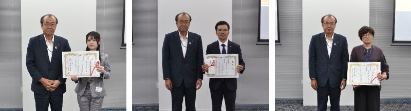 受賞者 左から 優秀賞 横浜支店 越岡さん / 最優秀賞 九州支店 塩手さん / 優秀賞 中国支店 福田さん